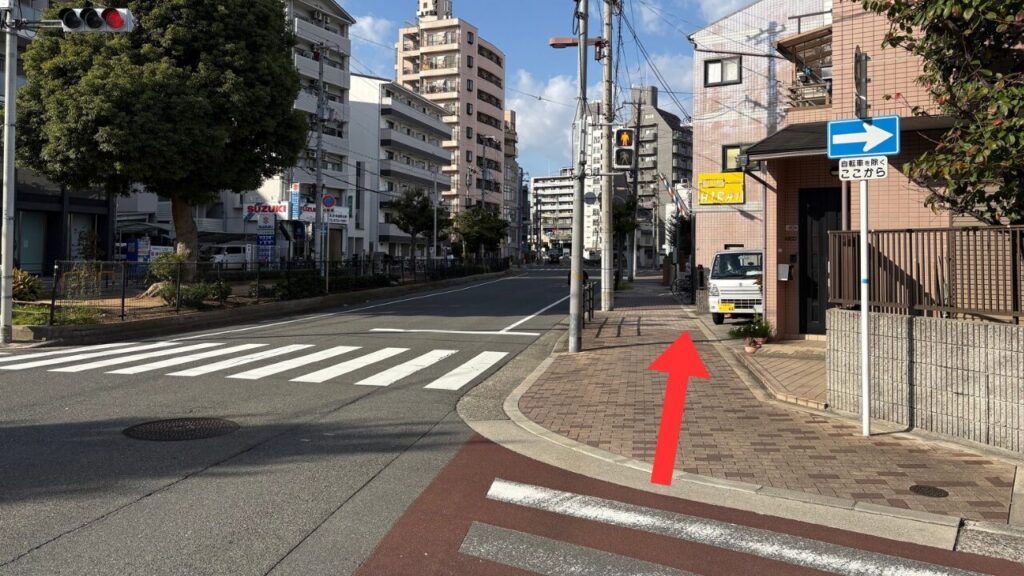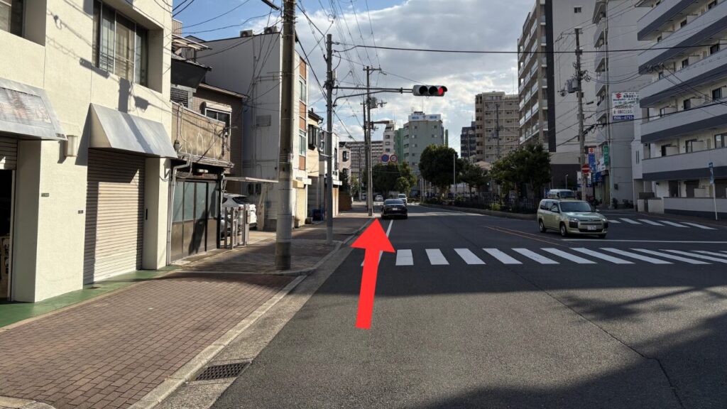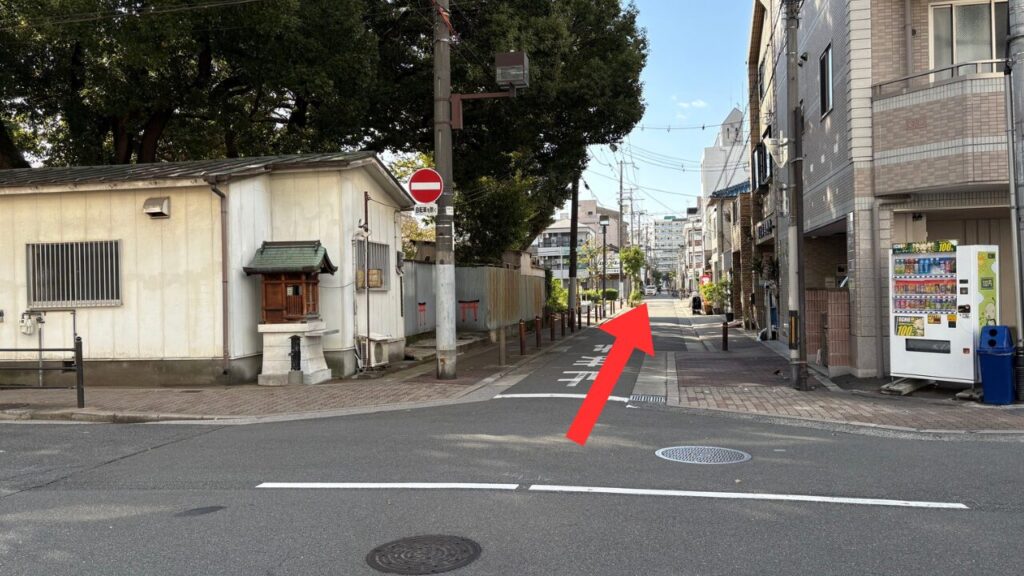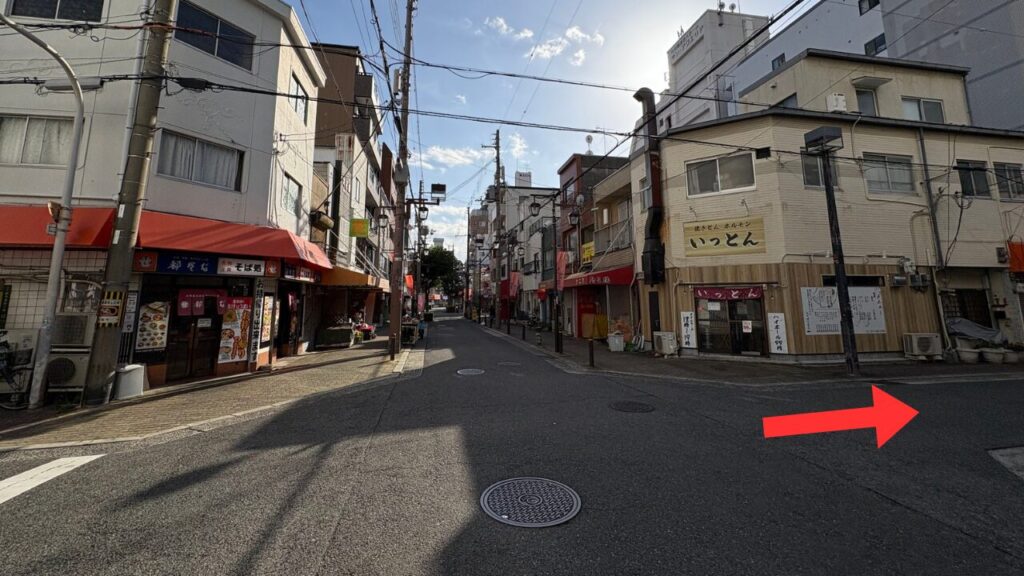 立ち食い蕎麦屋さんがある交差点を右に曲がります。